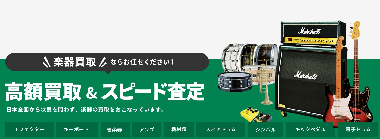 | 買取ジャンル | 楽器の買取アイテムの多さ。 |